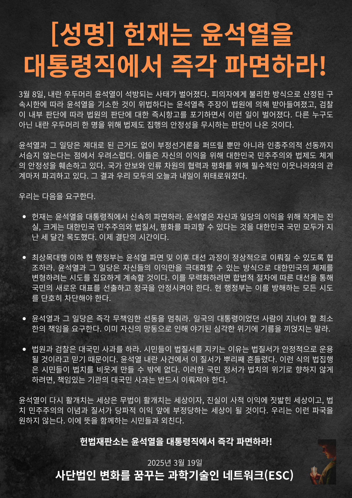👀 [ESC 성명] 헌재는 윤석열을 대통령직에서 즉각 파면하라! |