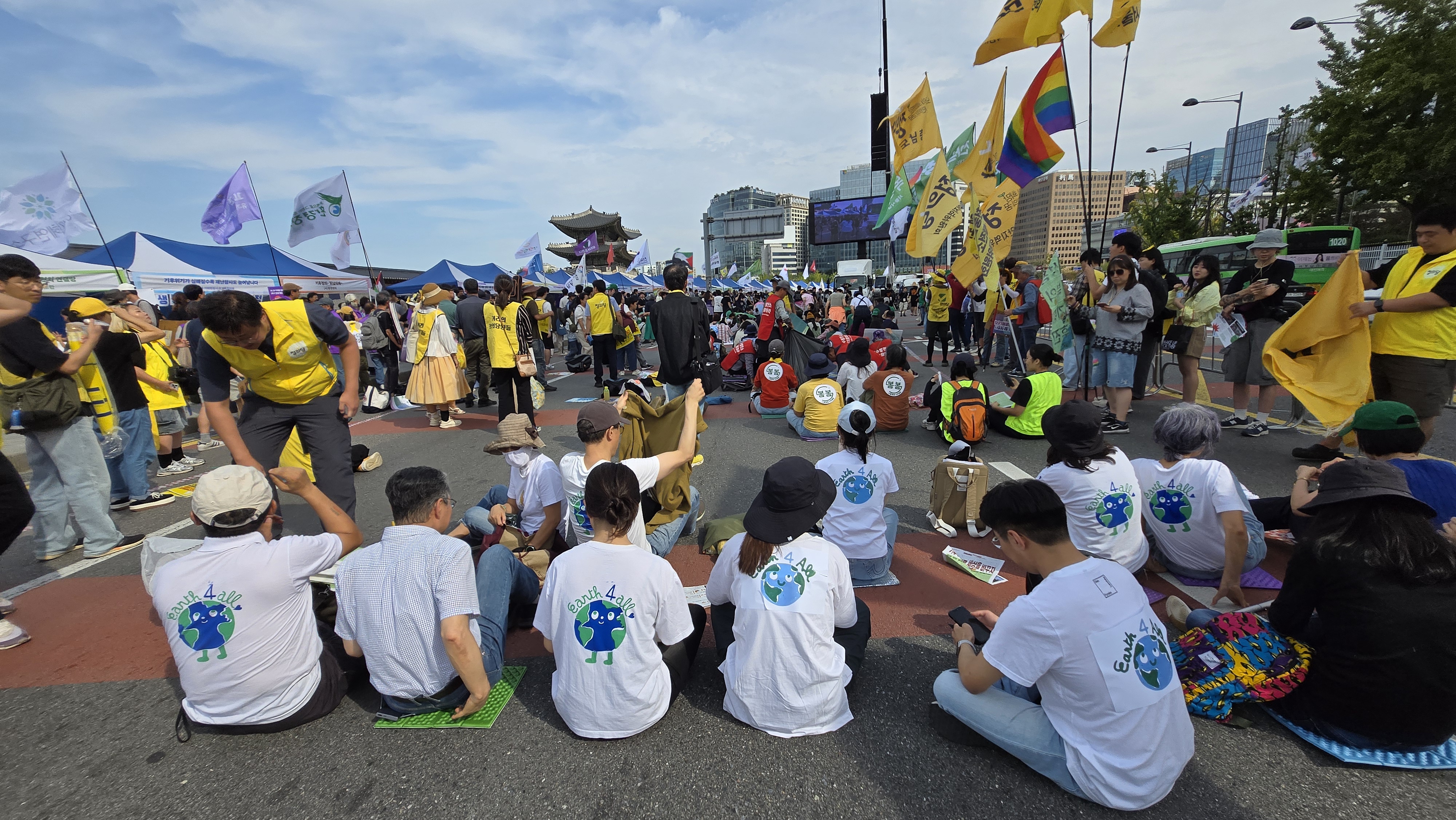 기후위기 해결과 불평등 해소를 외치는 이 행진은 시위이자 축제의 장이었습니다. 풍물패의 북소리, 구호, 그리고 도로 위에 눕는 다이인 퍼포먼스까지—기후정의의 목소리가 광화문을 가득 채웠습니다.