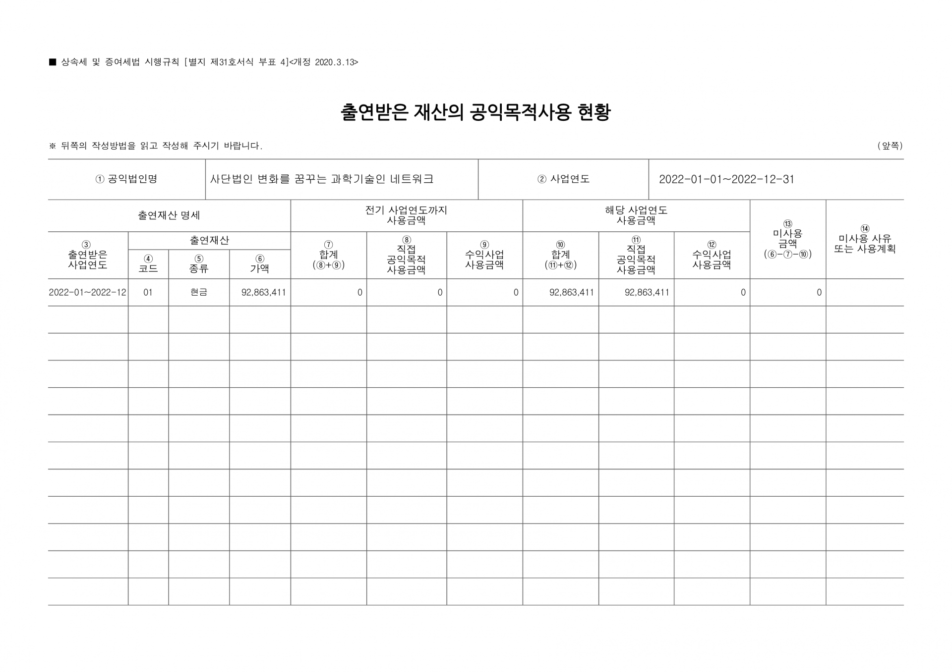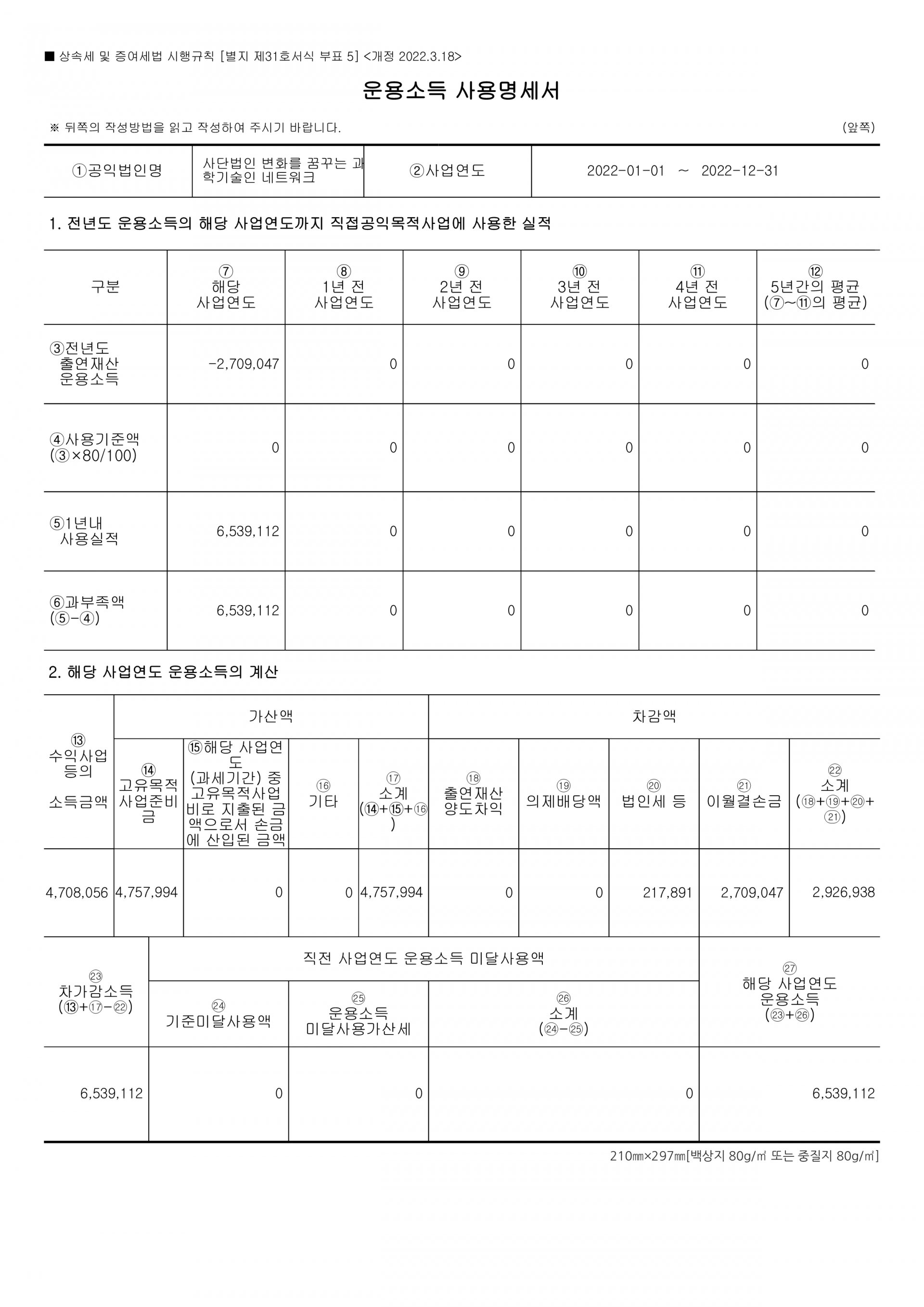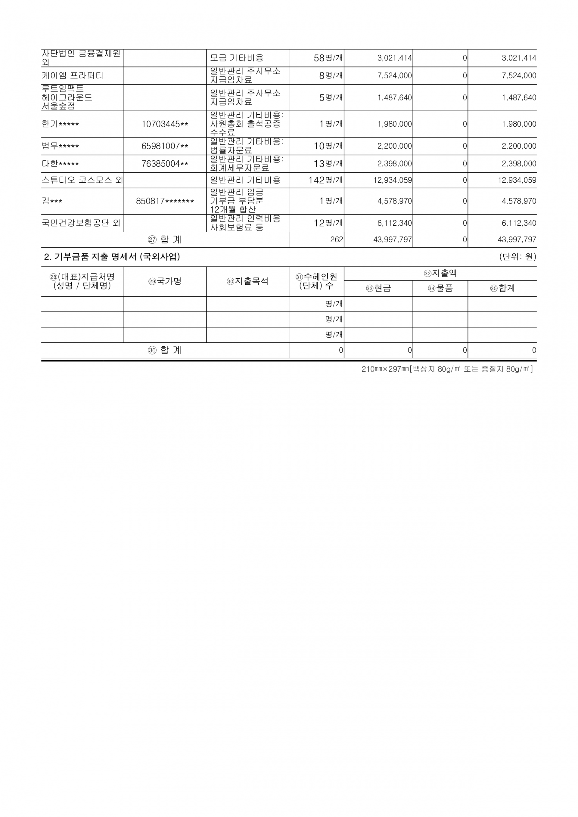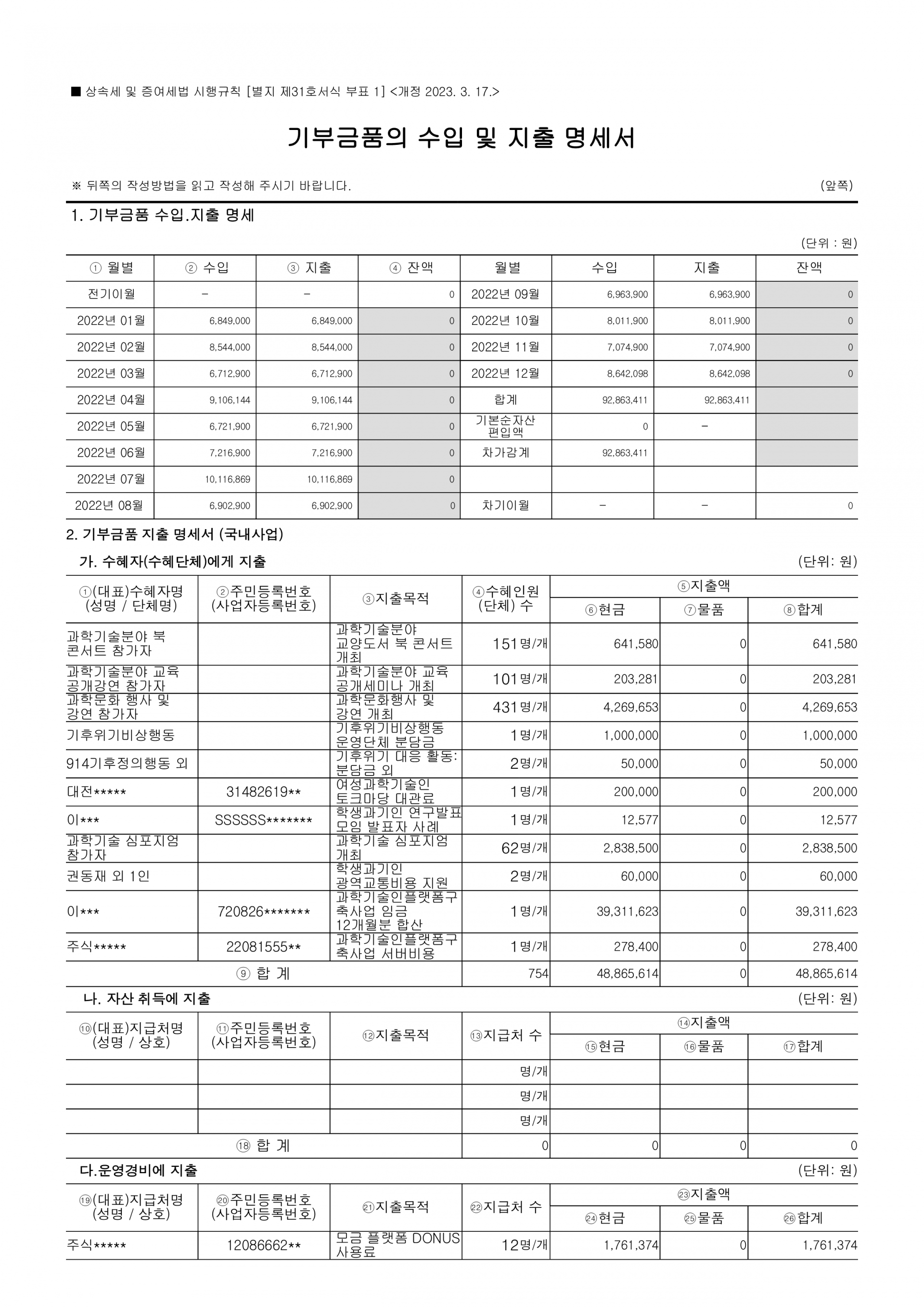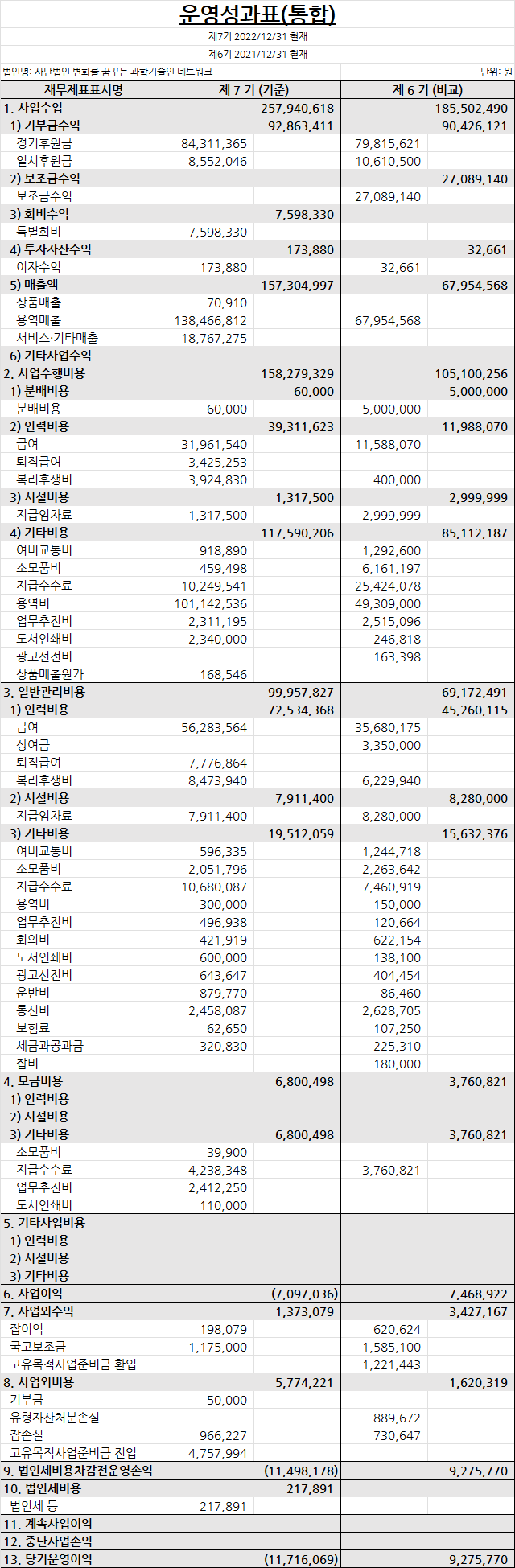 2022년 제7회기 결산 재무제표 및 주석, 기부금품 수지 명세 등 의무사항을 공시합니다.