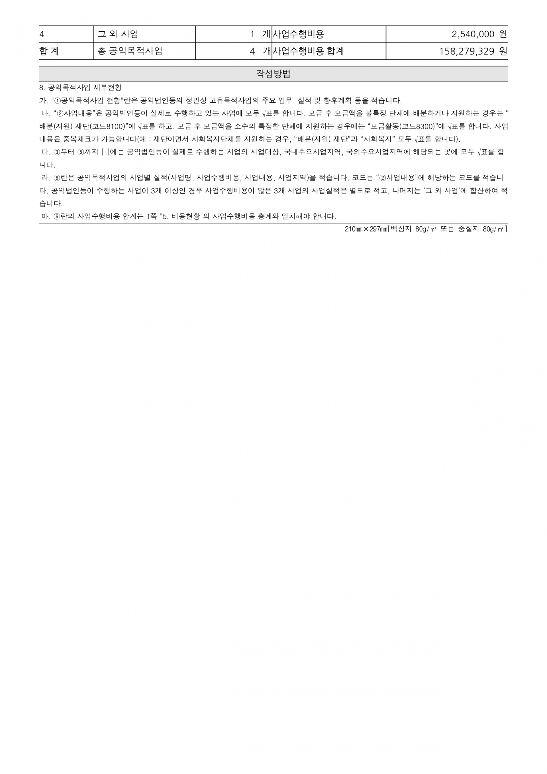 통합 재무상태표와 통합 운영성과표, 기부금품 수지 명세는 아래 표를 참조해주시고, 기타 상세 사항은 첨부파일을 확인해주시기 바랍니다.