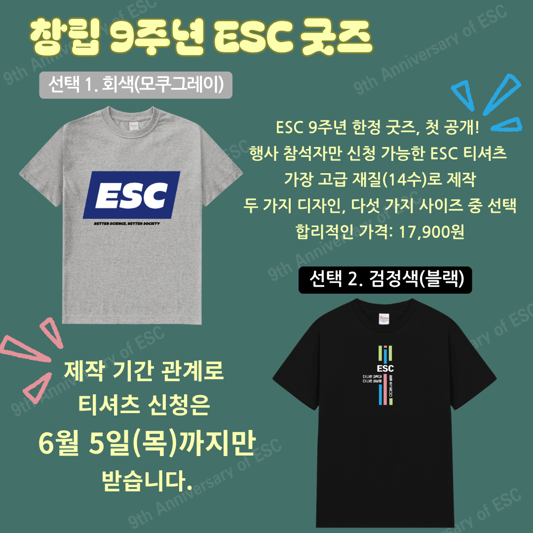 - 행사 참가자에 한해 ESC 굿즈 티셔츠 신청이 가능합니다.