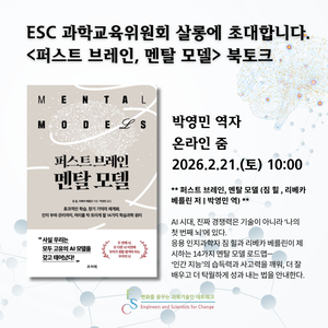 ESC 과학교육위원회가 주최하는 퍼스트 브레인, 멘탈 모델 북토크에 여러분을 초대합니다! 🍏주제: 퍼스트 브레인, 멘탈 모델 북토크 🍏일시: 2026년 2월 21일(토) 오전 10:00 🍏연사: 박영민 역자 (과학교육위원회 위원장) 🍏장소: 온라인 줌 (신청자 개별 줌 경로 안내) ** 퍼스트 브레인, 멘탈 모델 (짐 힐 , 리베카 베를린 저 | 박영민...