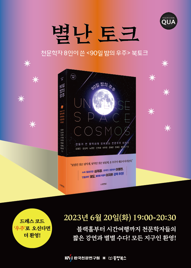 -Talk1 : 유니버스 - 사건의 지평선 너머에는, 정태현 박사(천문연) -Talk2 : 스페이스 - 플라이 투 더 문, 이우경 박사(천문연)