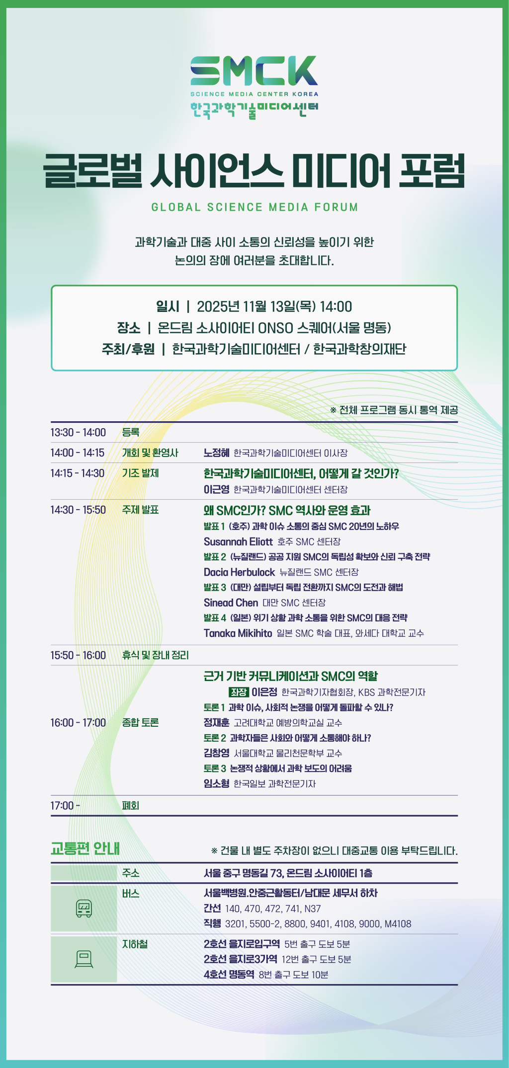 [한국과학기술미디어센터] 글로벌 사이언스 미디어 포럼 (11/13)