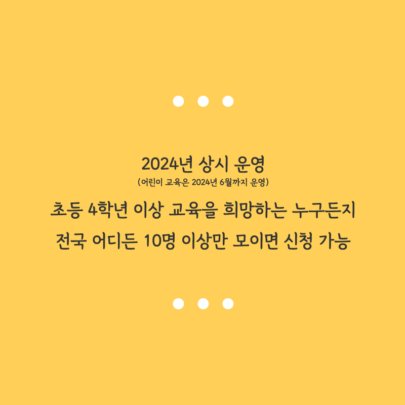 ② 어린이 교육 : 2024년 3월 4일(월)~6월 28일(금)