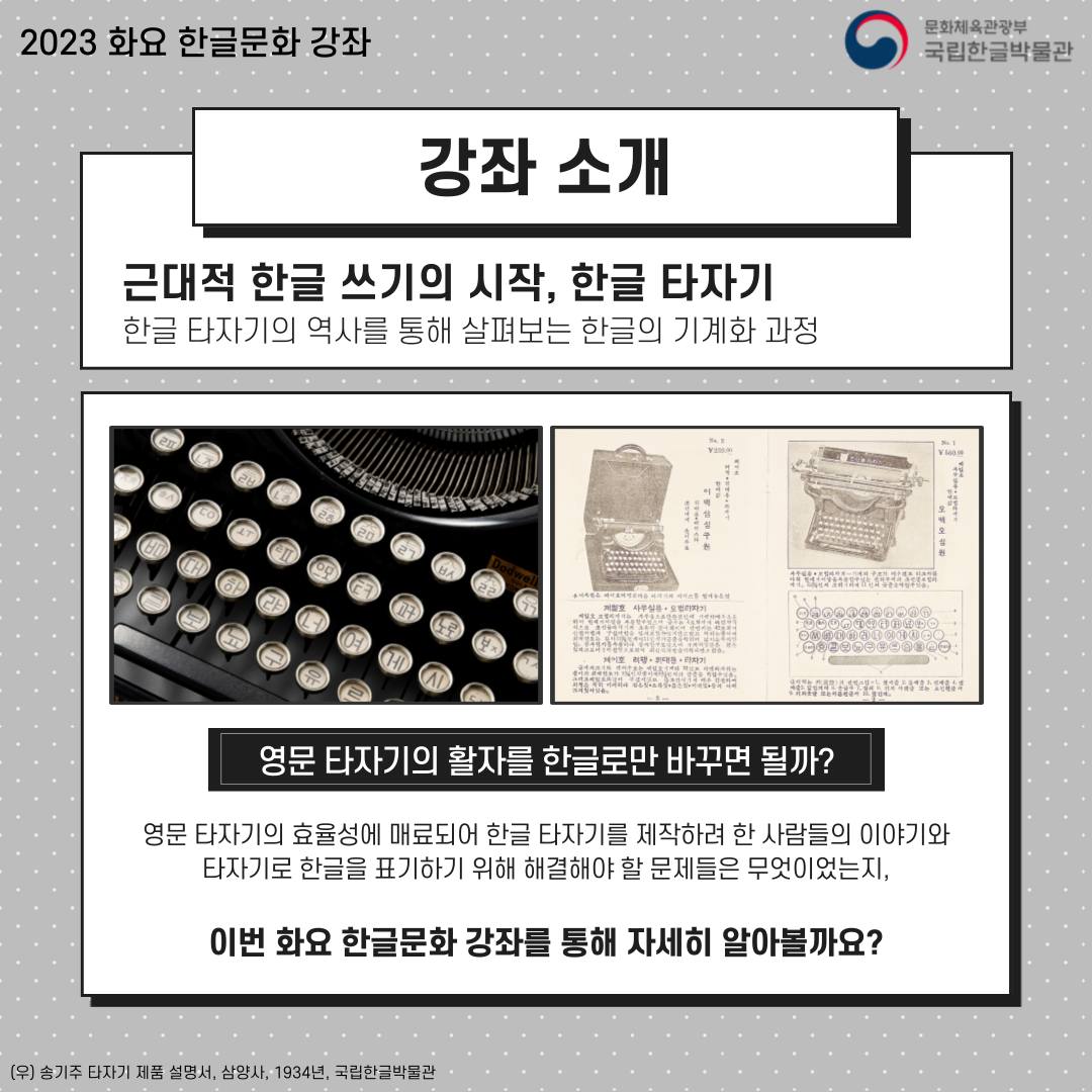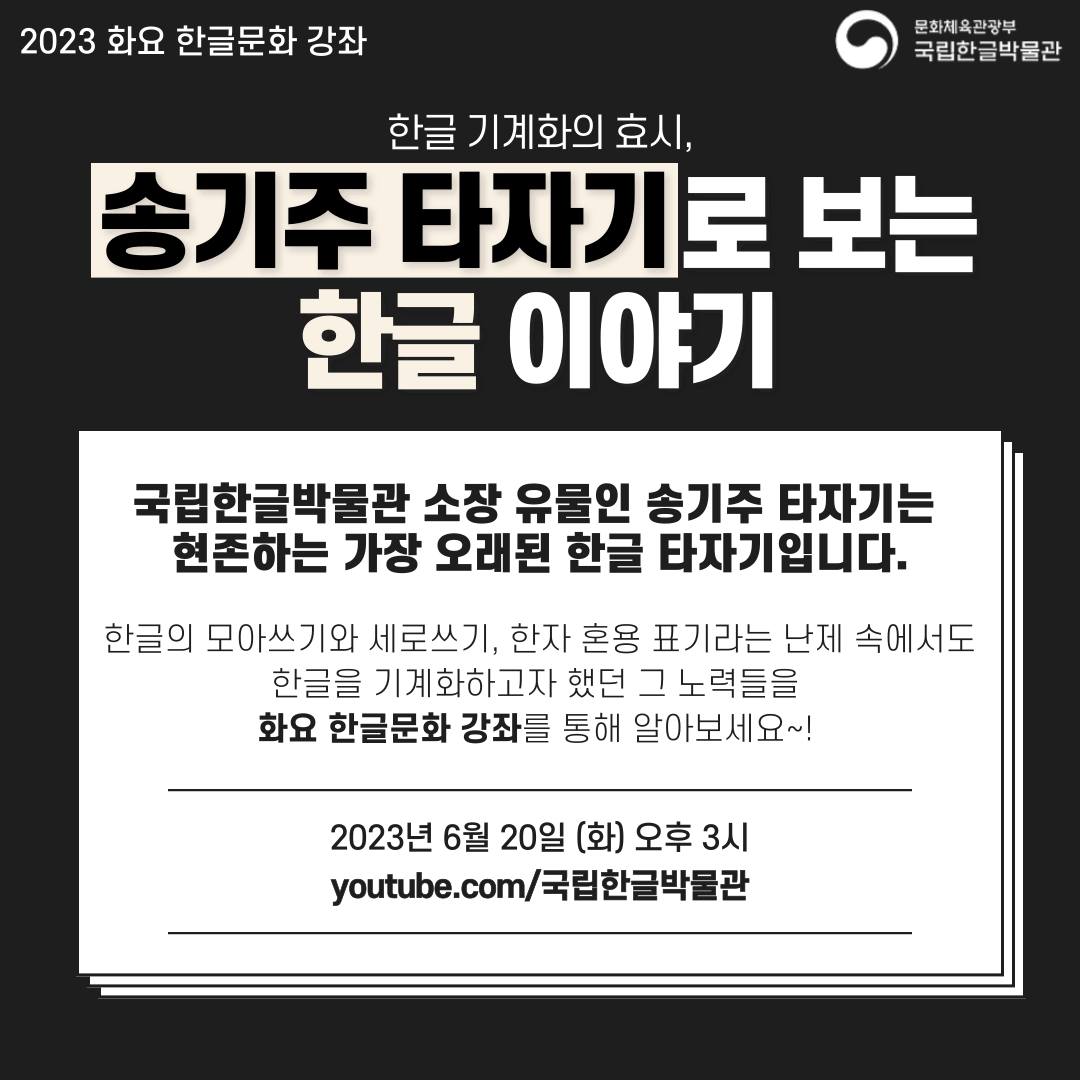 한글과 근대 과학 기술의 만남 '송기주 타자기'로 보는 한글 이야기' (06/20, 온라인)