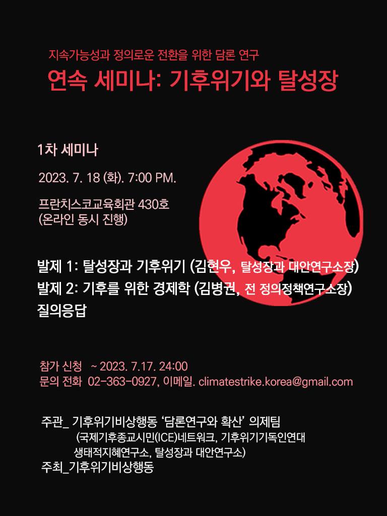 - 발제1: 탈성장과 기후위기 (김현우, 탈성장과대안연구소장)