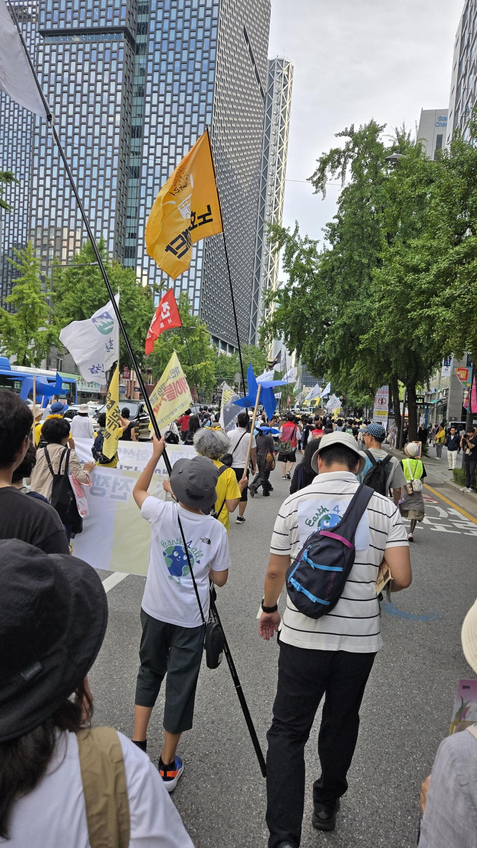 경북경궁역에 조금 일찍 도착해 점심을 나누고, 동동주를 곁들여 작은 사전행사를 열었다. 기후정의의 길을 함께 가자는 우리의 도원결의였다. 비록 복숭아나무는 없었지만, 마음만큼은 삼국지 속 의형제 못지않게 굳건했다.