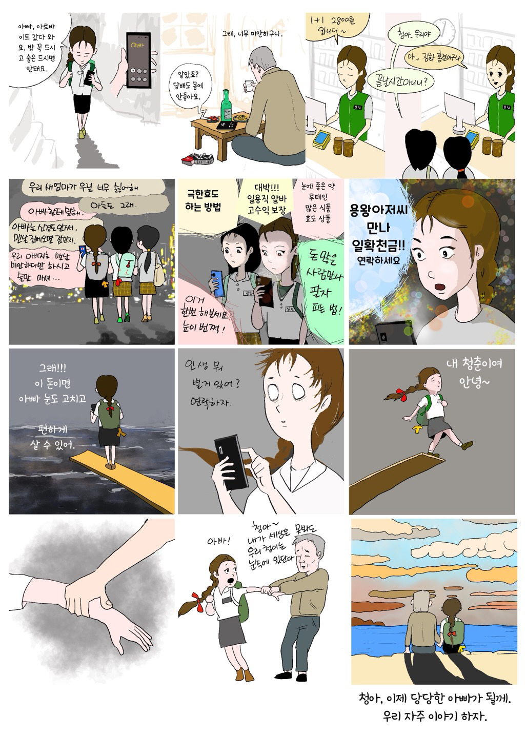 알고리즘 속은 인당수나 우물 속보다 훨씬 깊고 차갑다. 어머니의 노력, 아버지의 관심만으론 필터버블을 터트릴 수는 없다. ‘소년의 시간’의 아버지 에디처럼 후회하지 않으려면 아버지가 ‘어디 있느냐’가 아니라 ‘ 지금, 무엇을 하고 있는가’를 물어야 한다. 관심만 갖고 규칙만 말하는 참여가 아닌, ‘돌봄’의 무대에 직접 오르는 참여가 필요하다. 함께 놀고 좌절하고 경계를 세우는 어른이 되어야 한다.