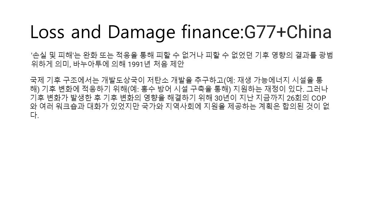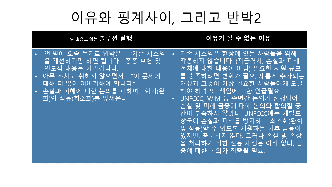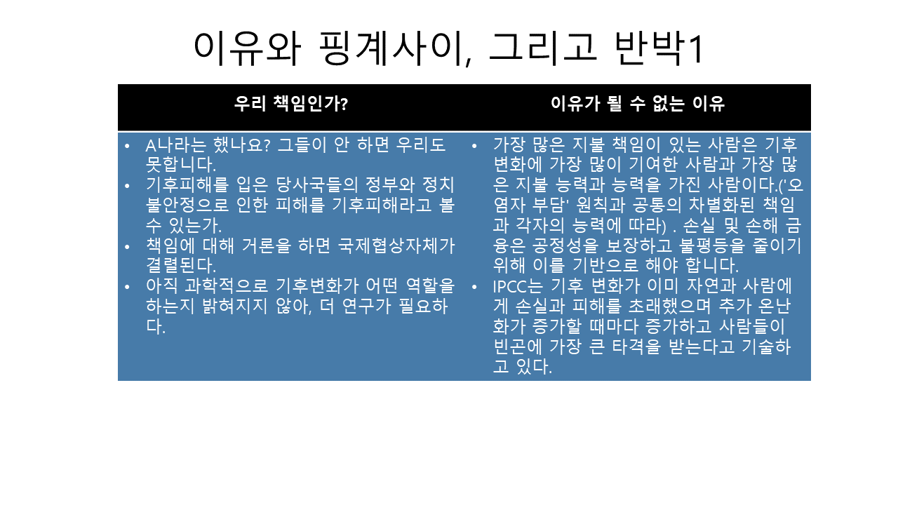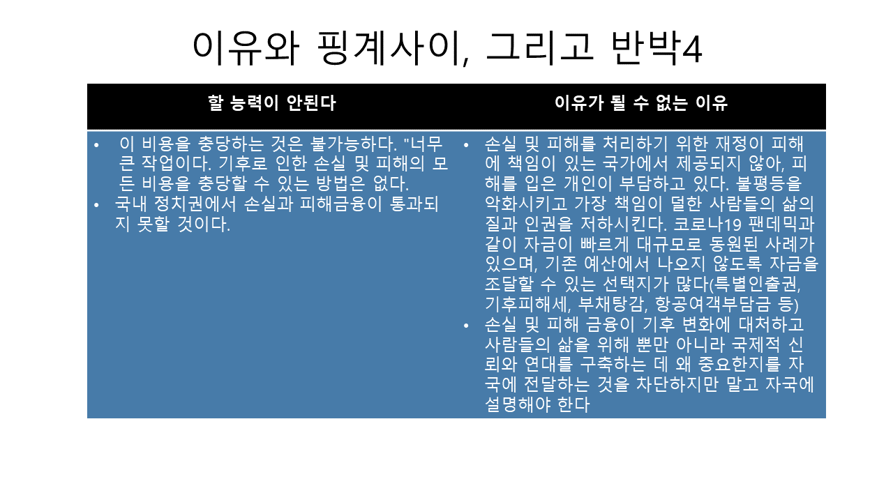 - 기후위기 피해국가(집단, 개인)에 대한 보상 Vs 원조 논쟁